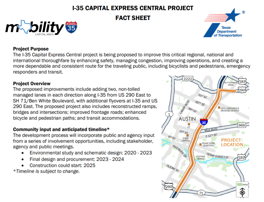 I-35 Capital Express Central proposes to expand the portion of I-35 that runs through Austin.